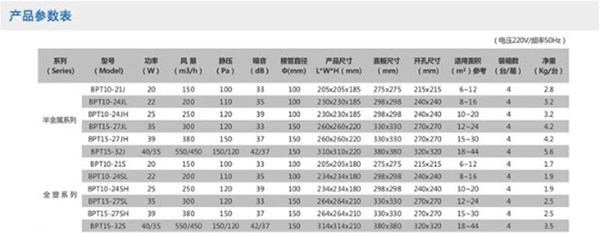 BPT天花板式管道換氣扇